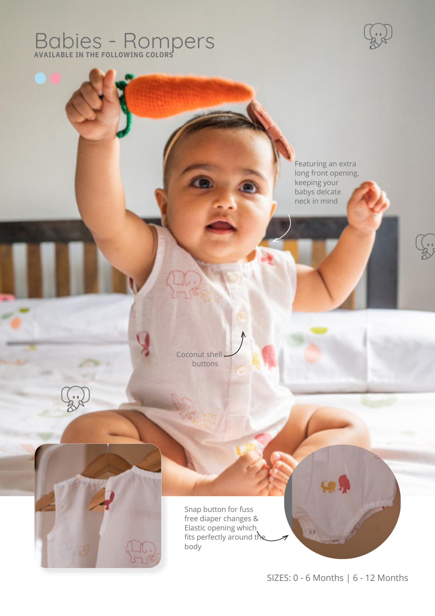 1. Easy snap buttons at the bottom for the baby’s constant diaper changes